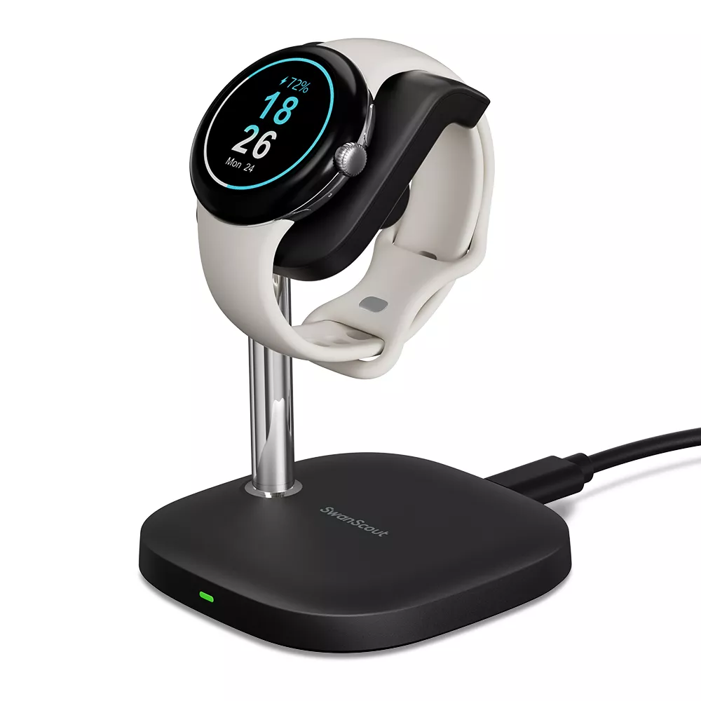 The SwanScout 505G2 is not just a charging dock; it’s a convenient, high-performance solution that elevates the way you charge your Google Pixel Watch. Whether you’re getting ready for the day or unwinding at night, this stand offers a perfect angle for easy access to your watch. The magnetic connection guarantees your watch stays in place while it charges, and the adjustable angle ensures you can view your device comfortably at all times. Its modern design blends seamlessly with any environment, making it ideal for both personal and professional spaces.