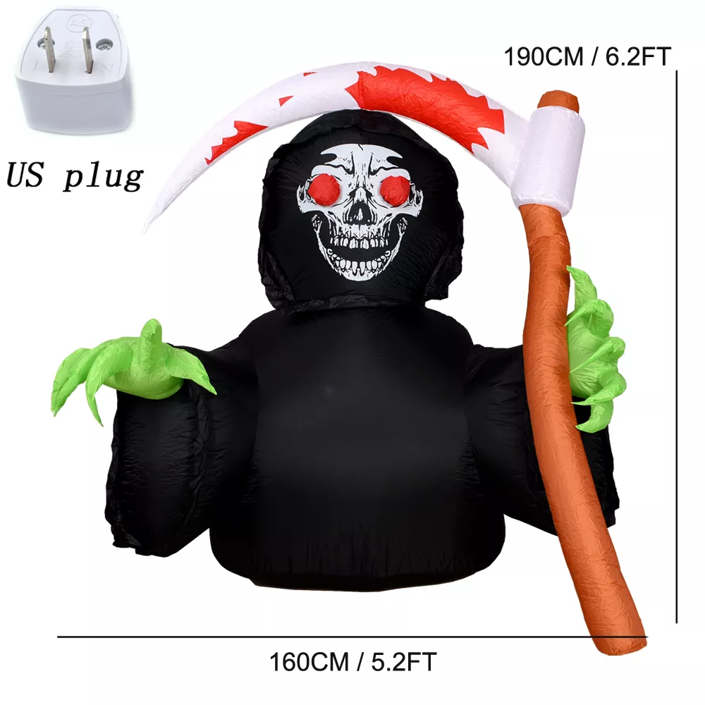 Looking to create a spooky, unforgettable Halloween display? This Halloween Inflatable Grim Reaper Ghost with Lights is the ultimate statement piece for your outdoor setup. Standing tall with a sickle in hand, this eerie ghostly figure will haunt your yard, delight your guests, and stop trick-or-treaters in their tracks. Whether you’re hosting a Halloween party or just want to be the scariest house on the block, this inflatable delivers big chills with bright lights and a haunting design.